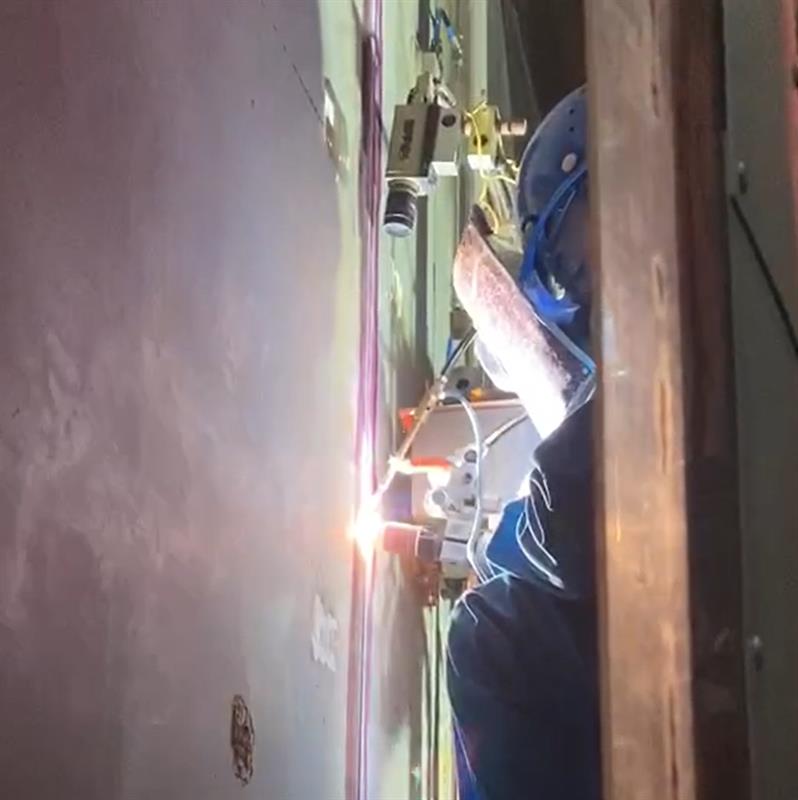 Full aluminum panel wind shielding cabin efficiently brings operators and welding gears to vertical joints along tank shells and provides indoor conditions for high-quality welding